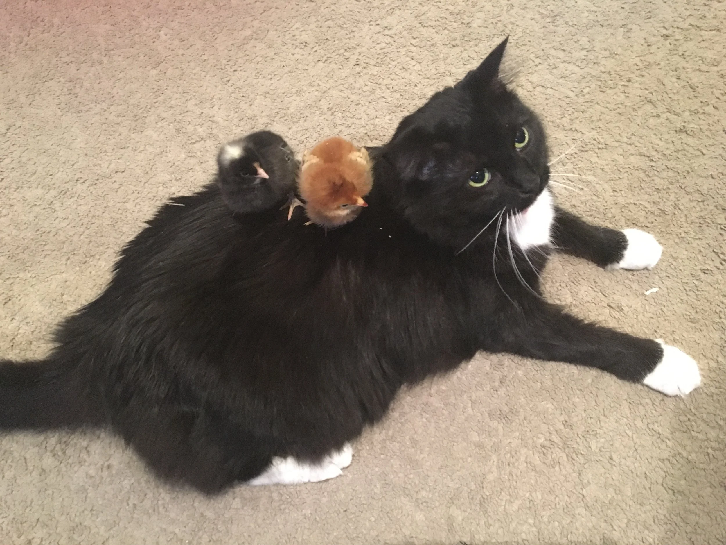 Minty is a black and white tuxedo cat. She was rescued from a local shelter in 2012 along with her brother, Taily. Min is a friendly furr-ball that let our baby chicks hang out with her. Oreo and Puff on the Min.